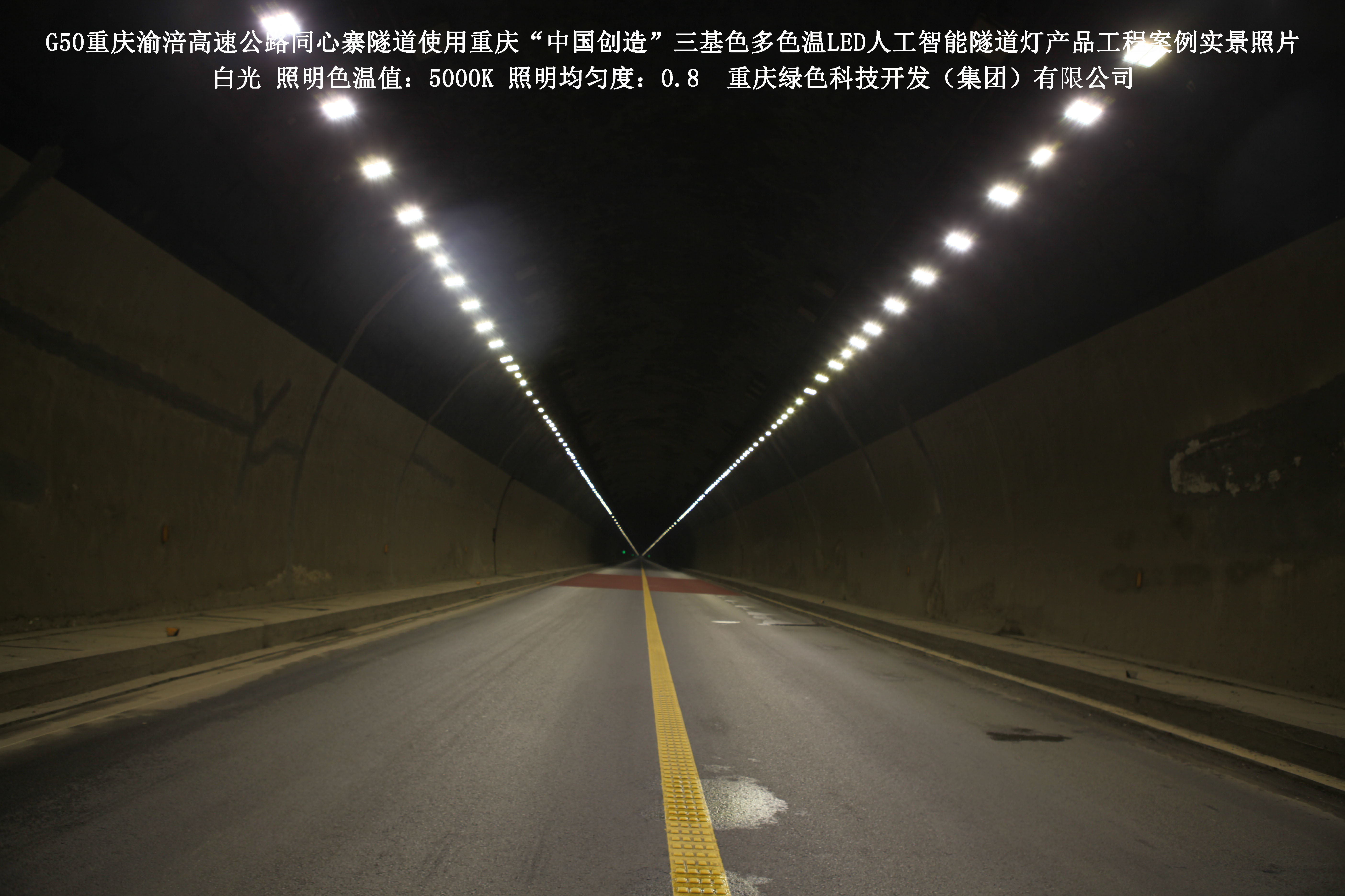 2016年7月,重慶渝涪高速公路有限公司使用了我司研發(fā)制造的重慶“中國創(chuàng )造”三基色多色溫LED人工智能隧道燈,對G50重慶渝涪高速公路同心寨隧道實(shí)施了綠色照明科技節能改造工程,工程實(shí)施后,極大地提高了隧道內照明清晰度、燈光均勻度、舒適度。通過(guò)智能終端實(shí)現單燈感知、線(xiàn)纜防盜報警,與原高壓鈉燈相比,節能率60%以上,有效解決了關(guān)閉控制回路或間隔關(guān)燈方式造成的照明暗區,確保車(chē)輛通行的安全。